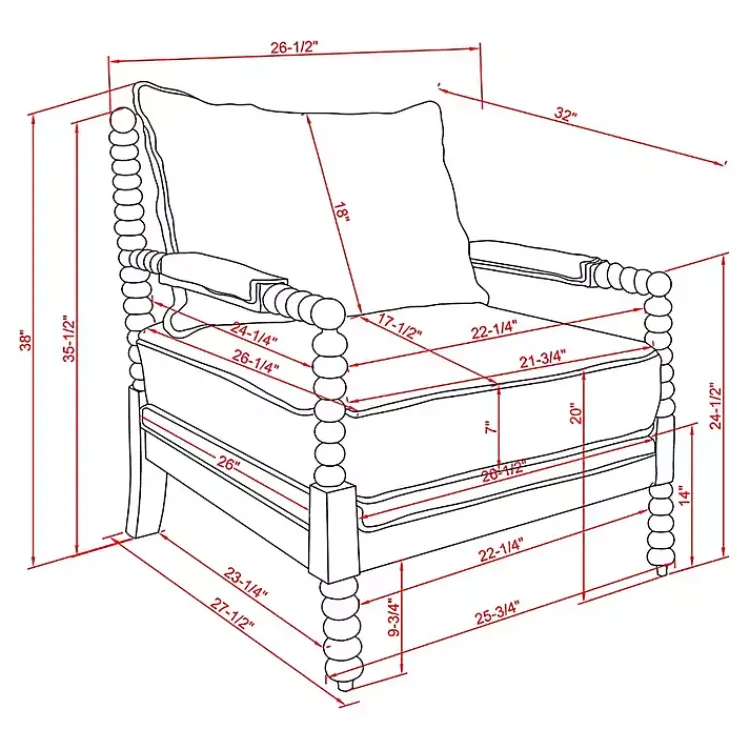 - Chair measures 26.5L x 32W x 38H in.; seat measures 20H in.