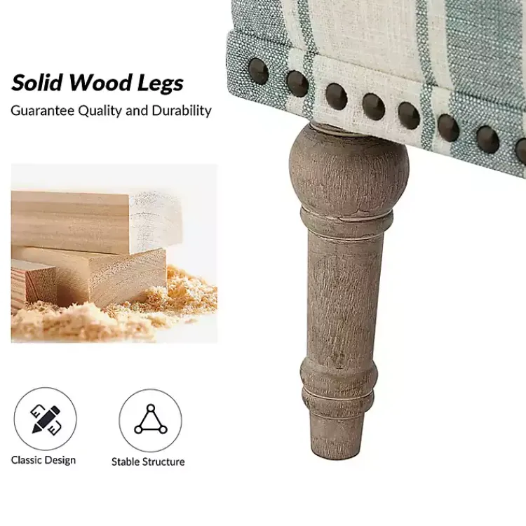 Refresh your home with this Blue and Ivory Striped Accent Chair! Featuring blue and white striped upholstery, this chair is perfect for brightening your space with charm and style.