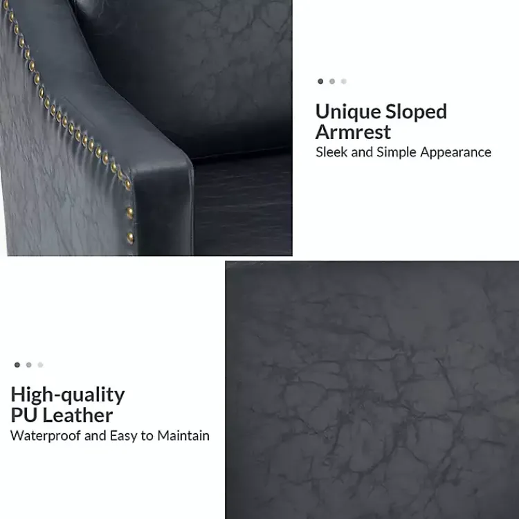 Elevate your space with style and comfort This Navy Faux Leather Bonita Accent Chair has a classic design with modern touches. With a cozy look and feel, this versatile chair will bring sophistication to any room.