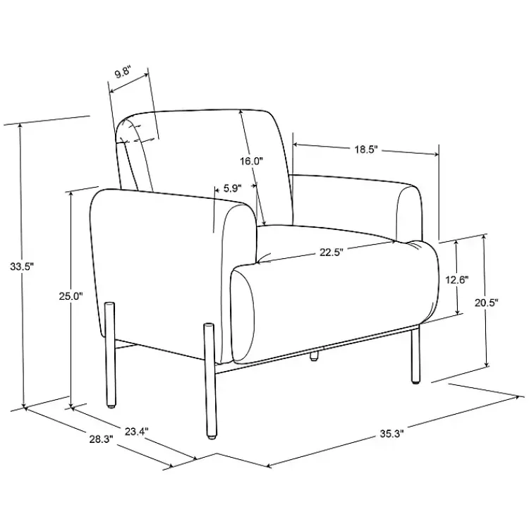 - Chair measures 35.3W x 28.3D x 33.5H in.