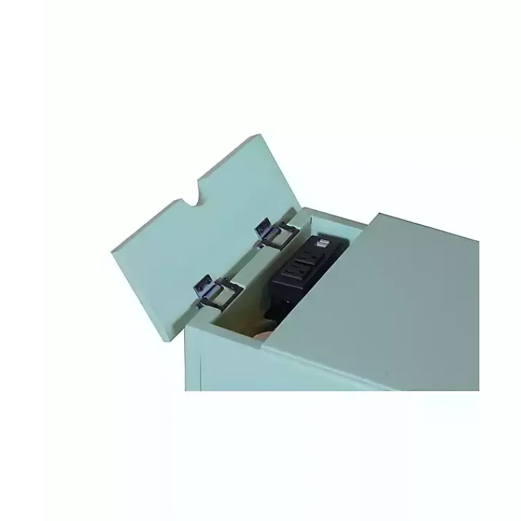 - Flip-up top opens to reveal two (2) USB ports and two (2) electrical outlets