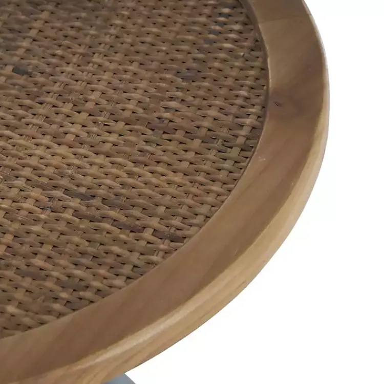 Modern style meets boho chic with this Black Metal Rattan Pedestal Accent Table! The matte black metal finish beautifully contrasts the woven rattan tabletop, giving your space a functional, eye-catching accent.