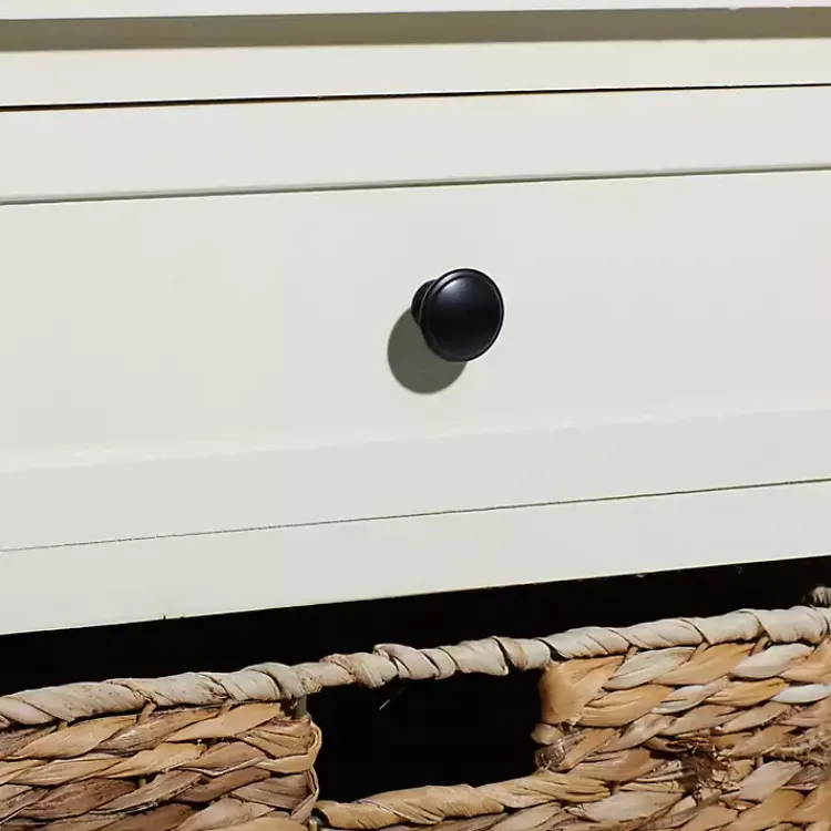 - Features one (1) drawer and two (2) woven storage baskets