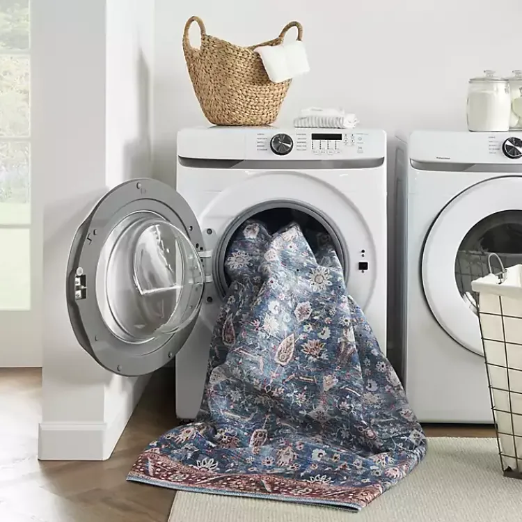 This Blue and Brick Floral Washable Area Rug will bring a striking beauty into your home. With its washable design, it’s perfect for homes with kids and pets!