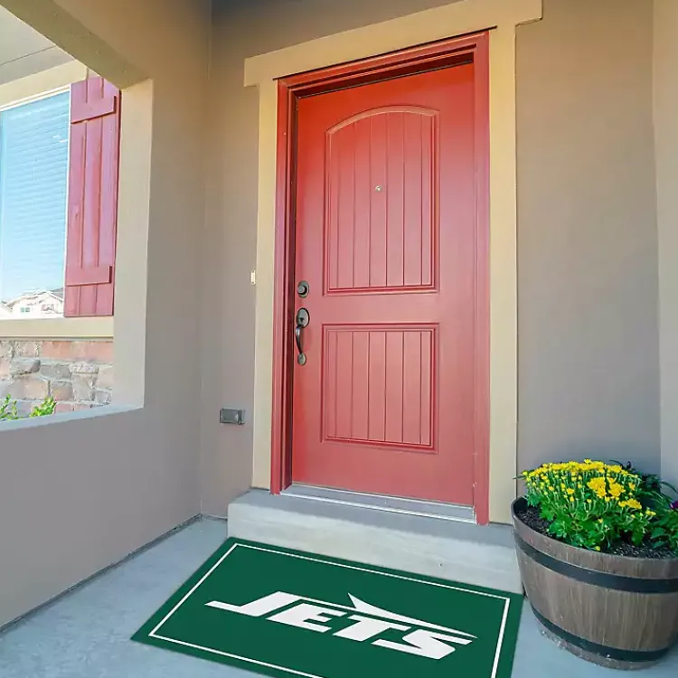 Create the perfect set up for game day with this New York Jets Area Rug. Featuring the bright team logo, this rug will score big points with any Jets fan!