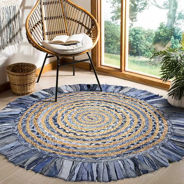 With its woven, earthy style, this Round Braided Jute and Denim Swirl Area Rug will bring an eclectic touch to your space. You’ll love how it fills your floors with unique texture!