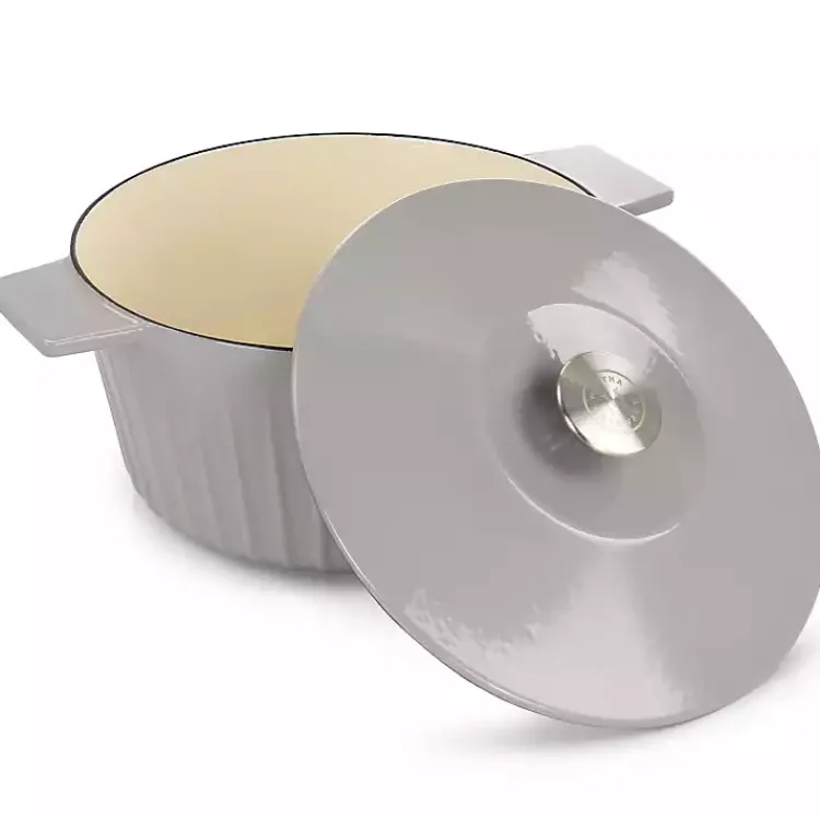 Whip up something delicious with this Martha Stewart Gray Ribbed 5 Quart Dutch Oven. Bake, reheat, and serve all your favorite dishes with ease and charming style!