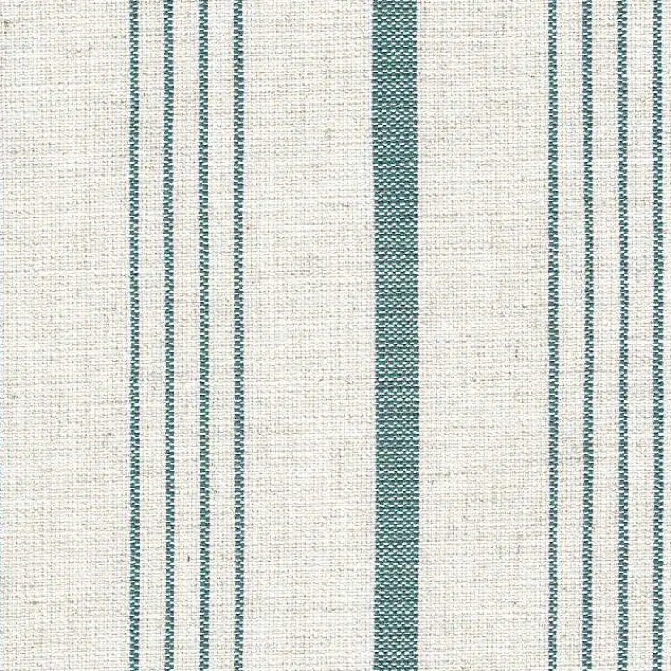 - Upholstered in a cream and blue striped upholstered fabric