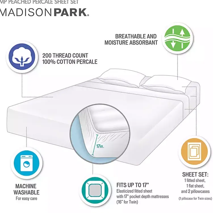 Give your bed a perfectly soft touch with this Navy Peached Percale King Sheet Set. The breathable, moisture absorbent fabric will keep you comfortable all night long.