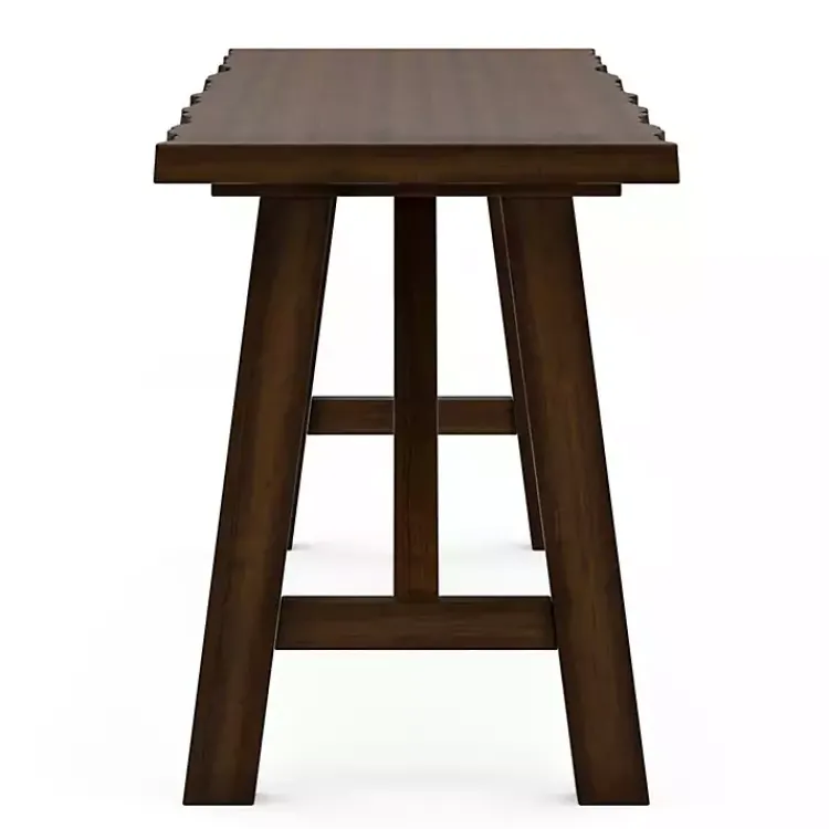 The Dark Brown Wood Live Edge Bench will bring effortless, natural beauty to your living space. Made with a walnut wood finish and trestle base, this bench is sure to make a gorgeous seating option.