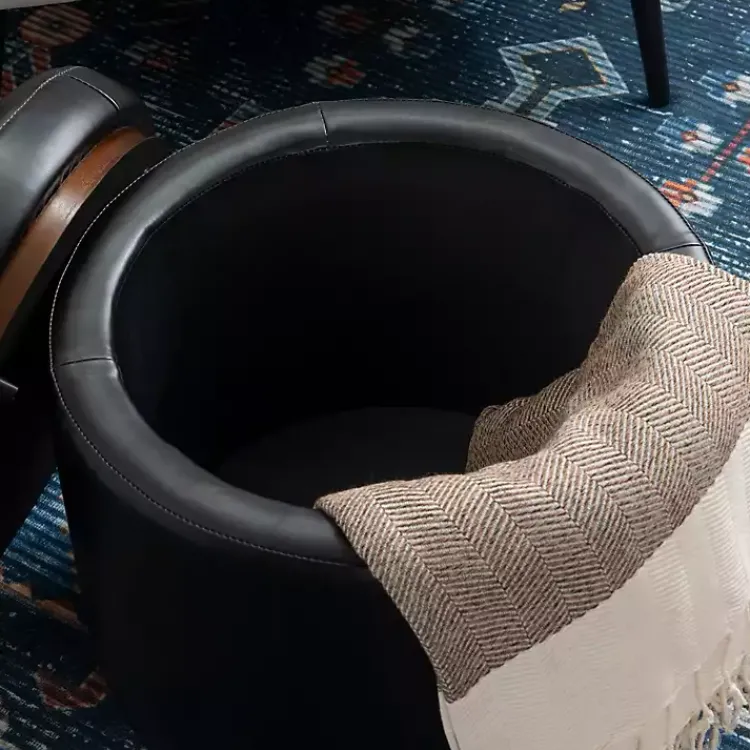 Whether it sits next to your sofa or vanity, the Round Black Faux Leather Storage Ottoman will look chic in any spot! Tuck away throws, books, and more in its hidden storage space!