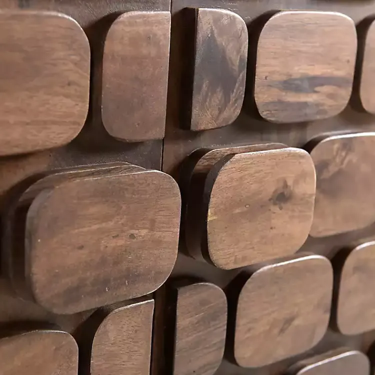 This Brown Carved Wood Woven 3-Door Sideboard radiates mid-century modern beauty! The hand carved, oval patterns result in a dimensional look, making it a gorgeous statement piece for your home.