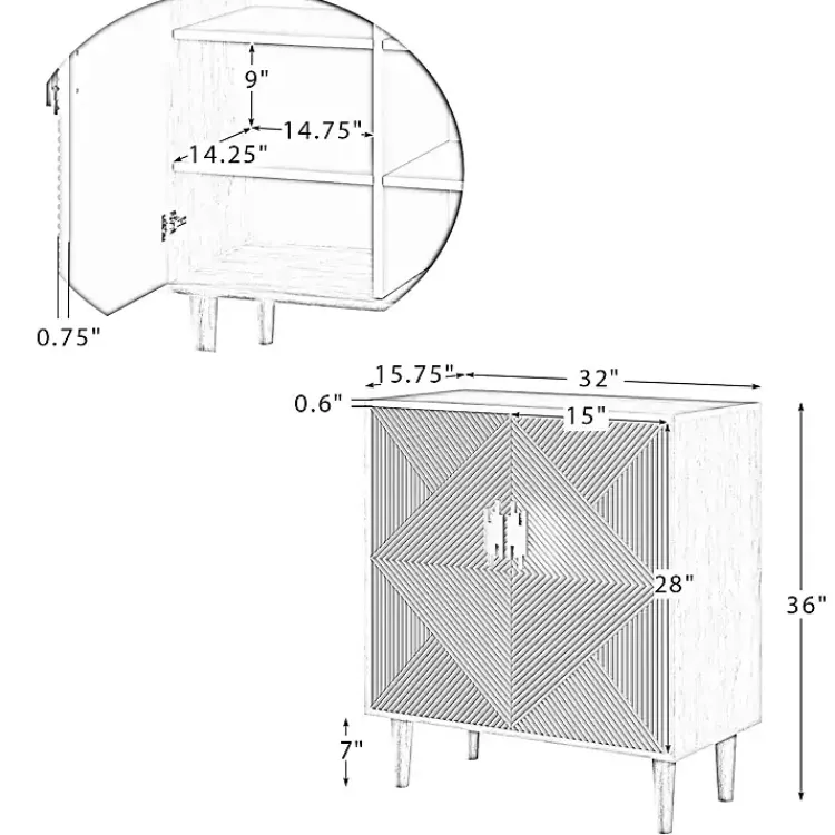 - Cabinet measures 32.25L x 16W x 36H in.