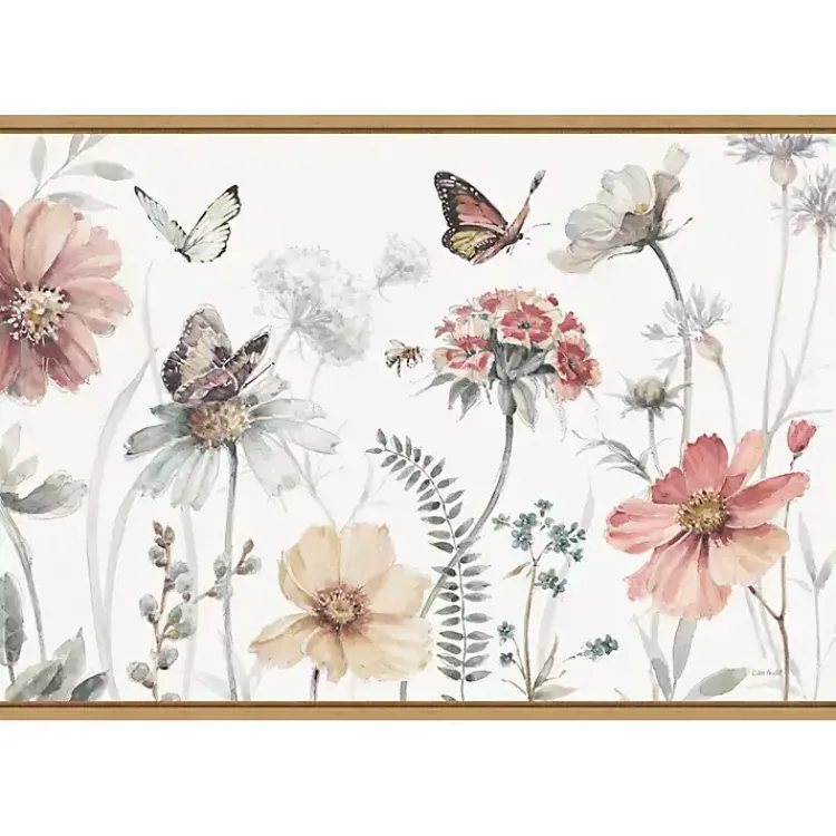 Refresh your walls for the springtime with this A Country Weekend I Framed Canvas Art Print! Showcasing watercolor wildflowers and fluttering butterflies, it’s sure to make a calming presence in your home.