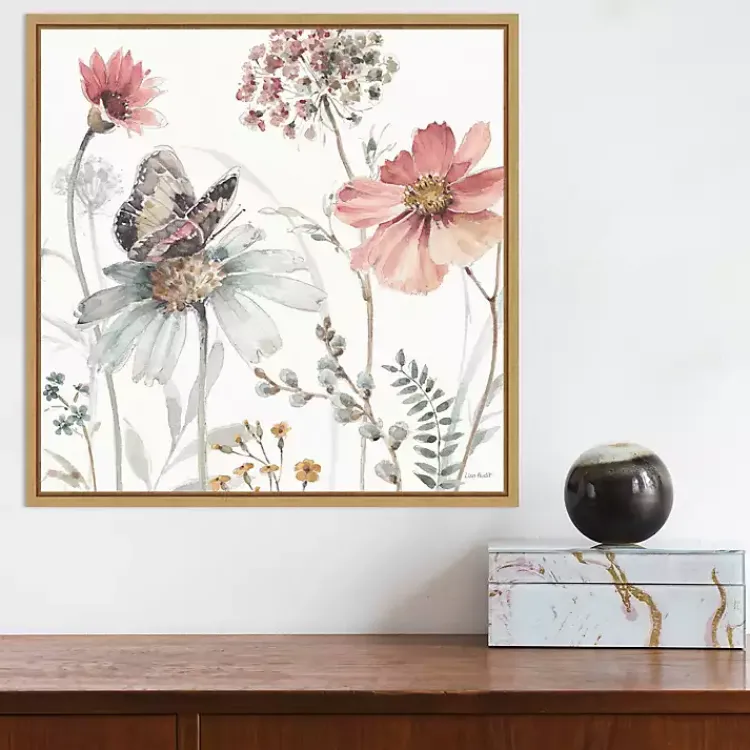 Refresh your walls for the springtime with this A Country Weekend II Framed Canvas Art Print! Showcasing watercolor wildflowers and a fluttering butterfly, it’s sure to make a calming presence in your home.
