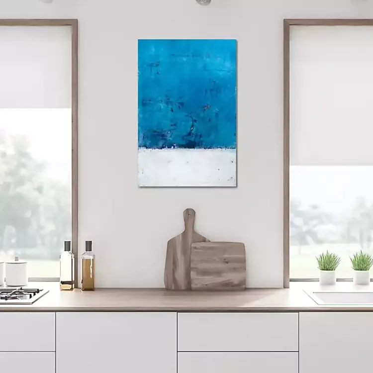 Bring a modern element to your walls with this Abstract Snow White Canvas Art Print. With electric blue tones, it will make a bold statement in any space!