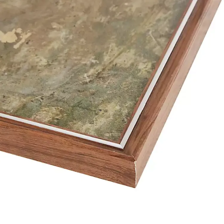 - Brown frame around wrapped canvas