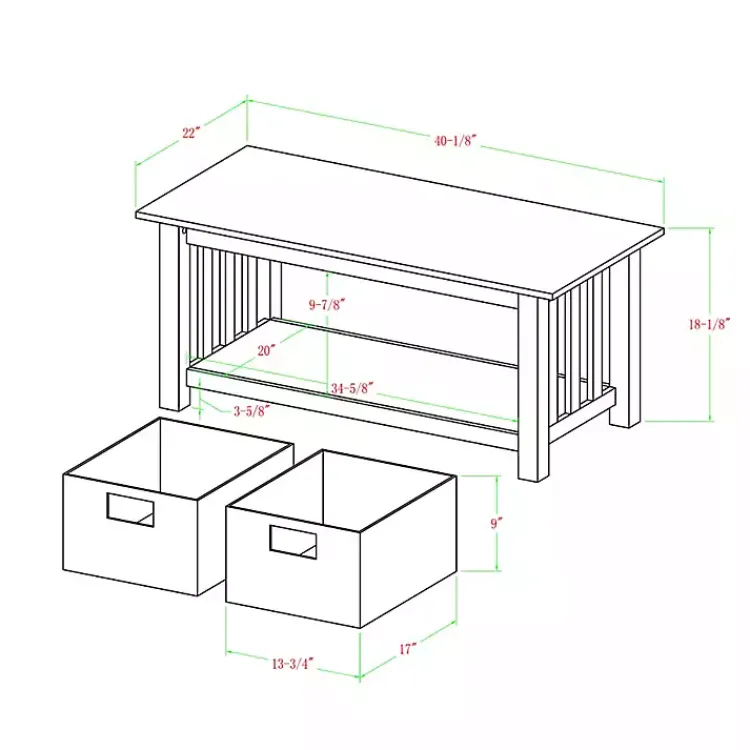 - Features two (2) wicker baskets
