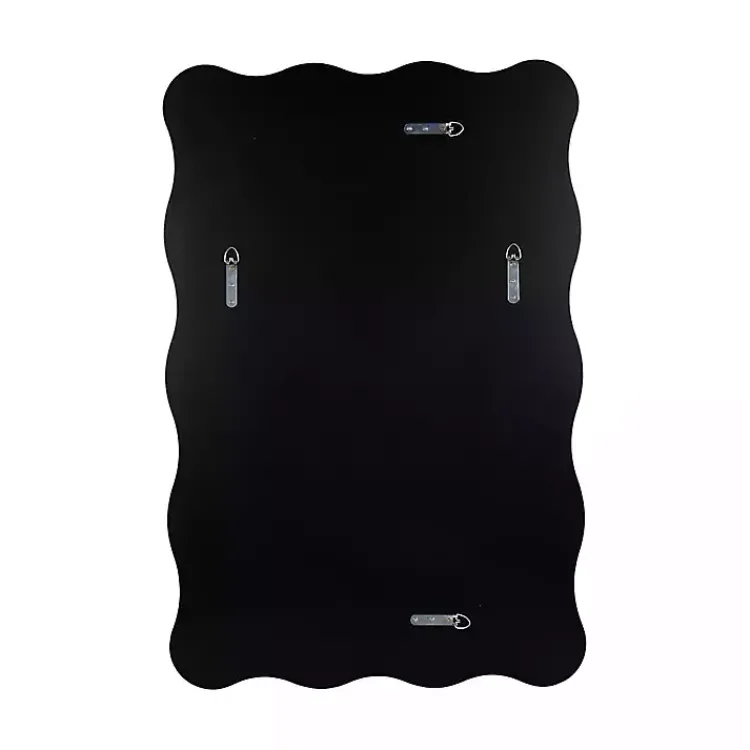 This Black Wavy Beveled Rectangular Wall Mirror showcases a design crafted with visual intrigue! Featuring a unique design with a small beveled edge, this mirror draws the eye and captures an elegant tone.