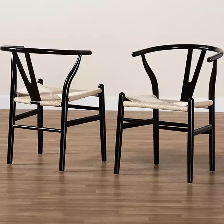 These Black and Tan Wishbone Dining Chairs will bring a refreshing look to your table! With an ergonomic design and charming woven seats, you can enjoy casual comfort and beautiful style during every meal!