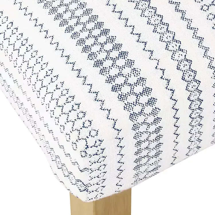 - Upholstered in a blue and white striped polyester fabric with foam fill