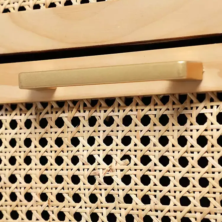 Keep your clothes and accessories tucked away in this Natural Wood and Rattan 3-Drawer Chest. While the gold drawer pulls add a bit of modern flair, it’ll look perfect in a boho or coastal-inspired bedroom.