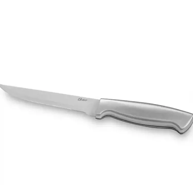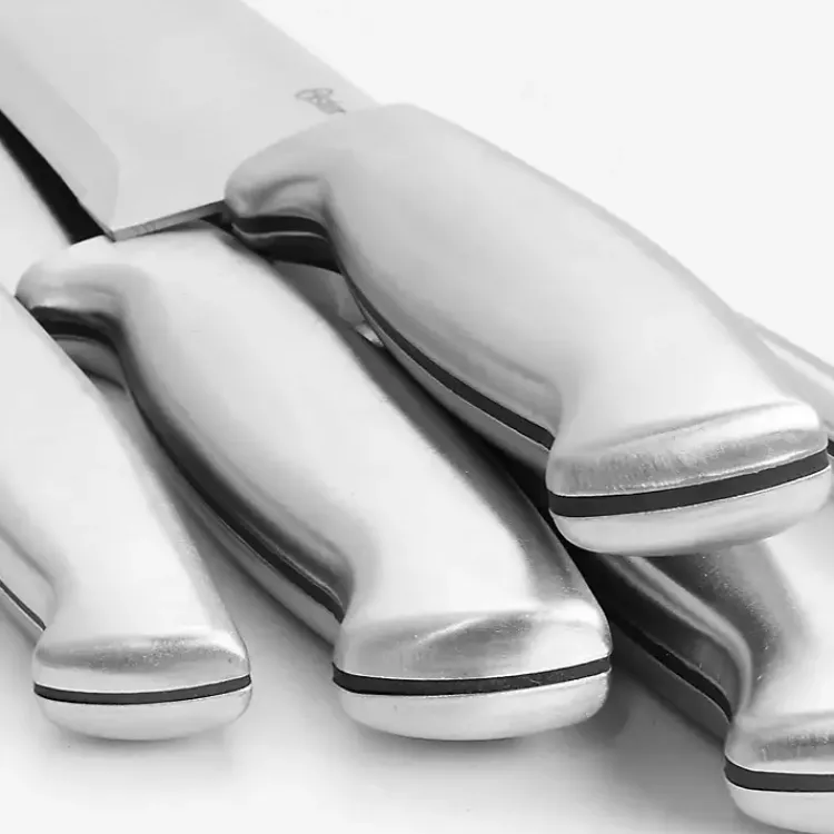 - Includes one (1) 6.5-inch santoku knife, one (1) 8-inch chef knife, one (1) 6-inch chef knife, one (1) 8-inch carving knife, one (1) 6-inch fork, one (1) 6-inch cleaver, one (1) 3-inch bird’s beak pairing knife, one (1) 6-inch utility knife, one (1) 8-inch bread knife, one (1) 3.5-inch pairing knife, one (1) boning knife, eight (8) 4.5-inch steak knives, one (1) pair of scissors, one (1) sharpening steel, and one (1) rubberwood block