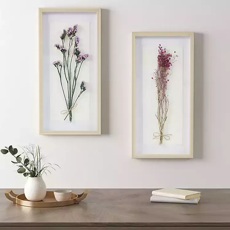 Bring natural texture and botanical beauty to your walls with our set of Avant Garden Dried Flowers Shadowboxes. These real, delicate sundried flowers will naturally invigorate any space.