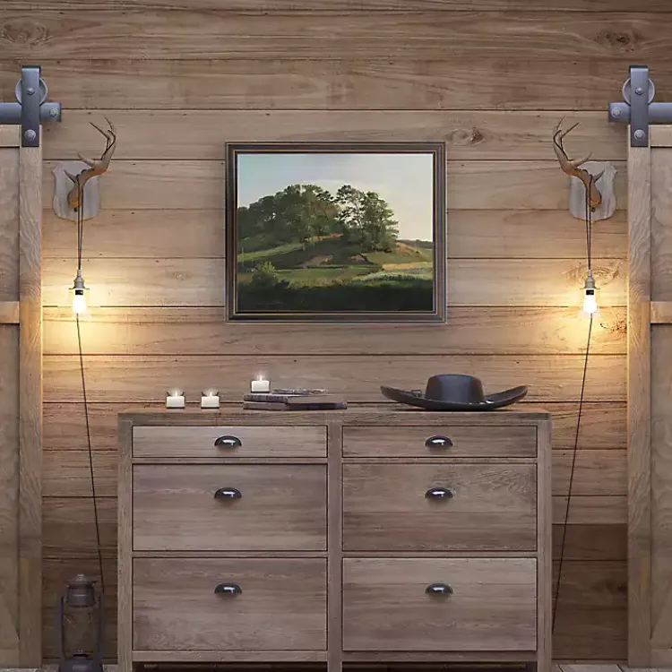 You can almost hear the wind blowing through the grass and rustling through the leaves in this Green Landscape Framed Art Print. Sunlit by a clear blue sky, this tranquil scene will breathe new life into your home.