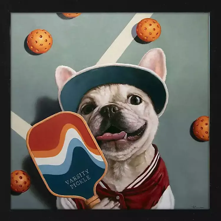 This little guy is ready for his next pickleball tournament! You’ll love the Varsity Pickle Framed Art Print as a cute addition to your living room wall.