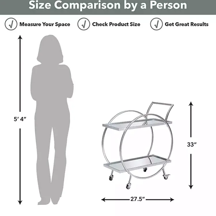 Impress your friends and family with this Silver Mirrored 2-Tier Odessa Bar Cart! This stylish bar cart is perfect for showcasing your wine or liquor bottles with your favorite glassware.