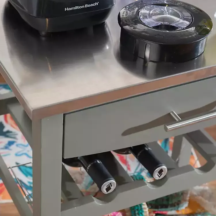 This Gray Wood and Stainless Steel Kitchen Cart easily creates extra storage and counter space in your kitchen. Its steel top is ideal for prepping meals, while its drawer and shelves will keep your utensils and other cooking needs readily available!