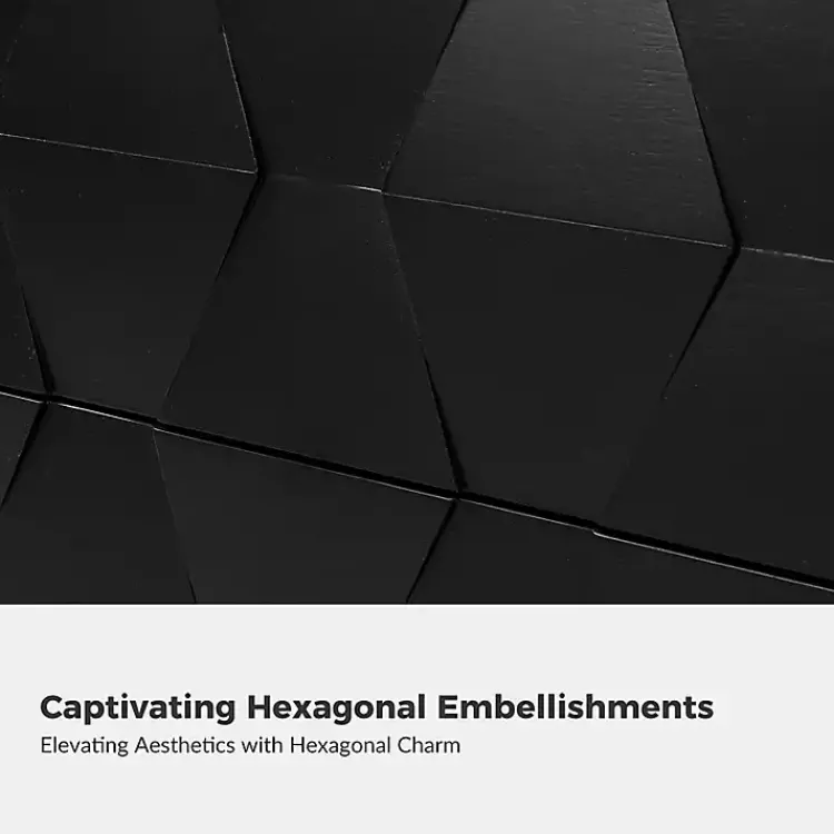 Upgrade your bedroom with this Black Geometric 2-Drawer Charging Nightstand! The modern black finish and hexagonal design will instantly elevate your room with a contemporary touch. You’ll love the integrated charging outlets for your bedside essentials!