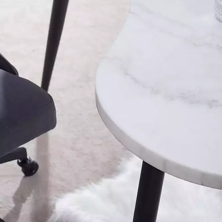 Make your office space as unique as your are with this White Marble Kidney Shaped Desk. Its kidney shape and white marble veneer top will make a statement in any room. You’ll love how its black canted legs perfectly accent the piece!