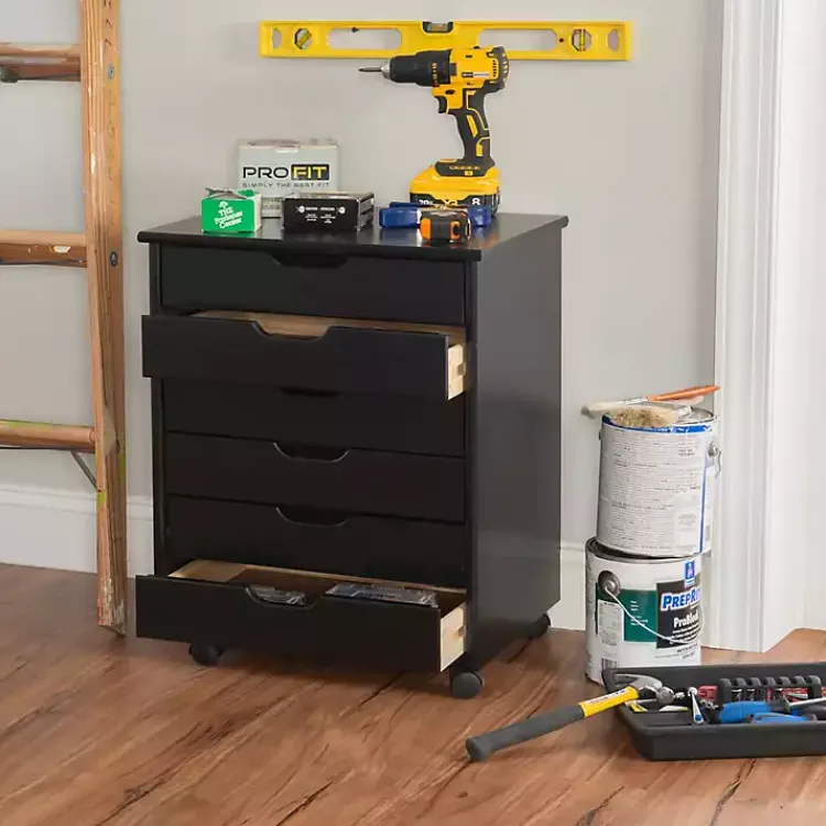 This Black Wood Wide 6-Drawer Cary Storage Cart is wide to provide extra drawer capacity for your office, kitchen, bedroom or anywhere organization is needed! With six wide drawers and an ample top, this cart can go next to a desk or craft table to keep items within reach.