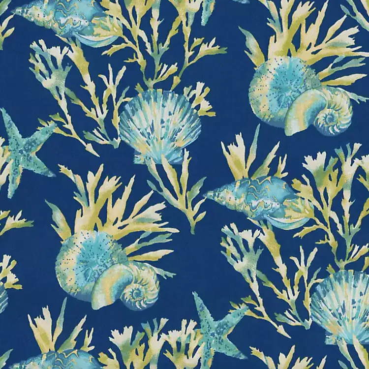 - Features a coastal pattern with shells, starfish, and coral reefs