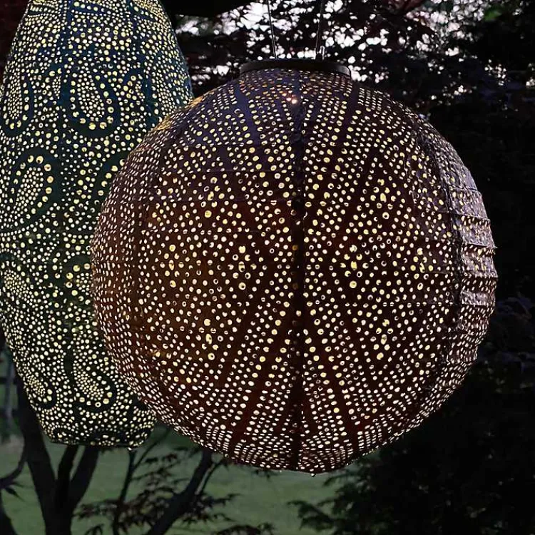 Bring a glow to your backyard oasis with this LED Round Copper Outdoor Hanging Lantern. While beautifully illuminating the intricate ikat patterns, it makes an alluring statement.