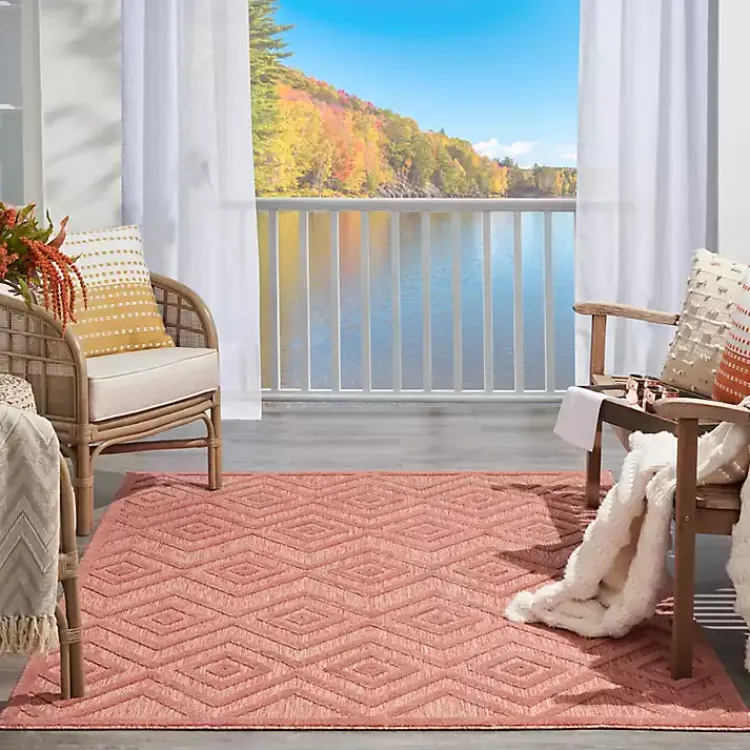 Tie together any room in your home with an eye-catching pop of color! You’ll love how our Coral Orange Diamond Indoor/Outdoor Area Rug looks in any spot in your space.