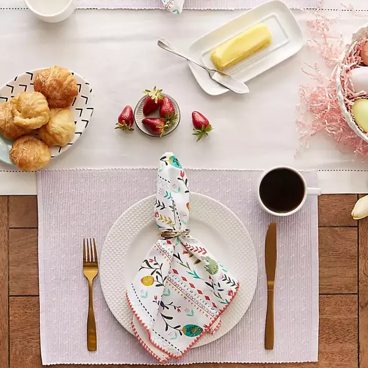 The set of Pastel Lavender Fog Dobby Placemats will add a subtle pop of color and texture to your tablescape! Featuring reversible designs, they’re perfect for elevating your everyday meals.