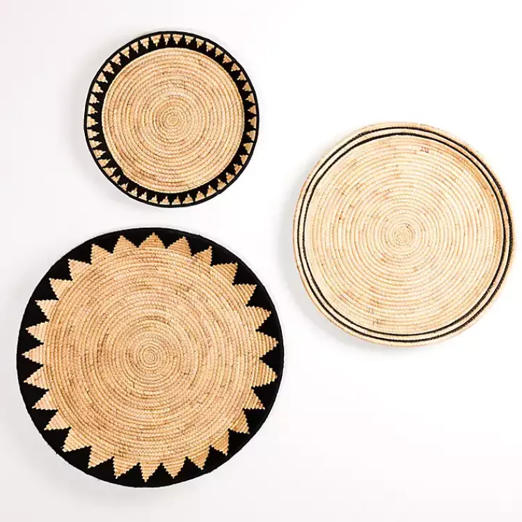 Create a striking focal point with the set of Black Water Hyacinth Basket Wall Plaques! The natural, woven textures are accented with decorative patterns for a playful touch. This trio will perfectly blend with coastal and boho aesthetics.