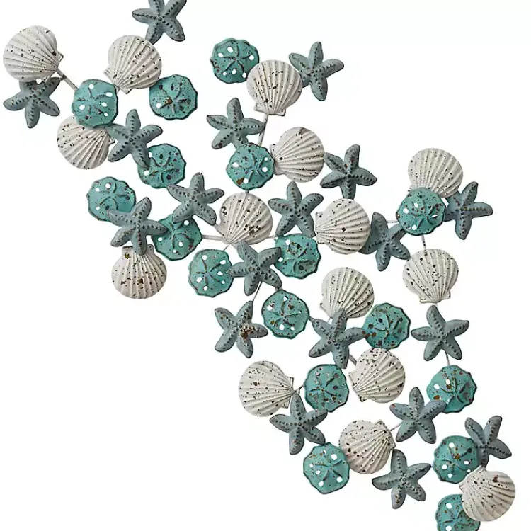 Bring a bit of the beach home with our beautiful Coastal Metal Wall Sculpture! The bright blue hues mixed with crisp white shells is perfect for your space.