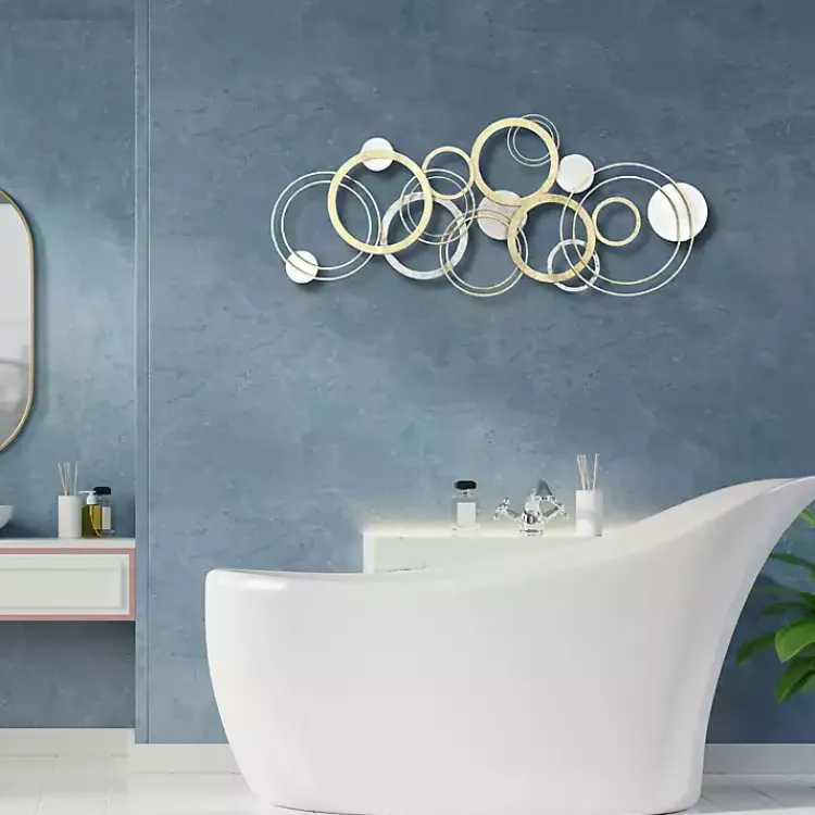 Give any room a modern-chic focal point with this Gold and Silver Metal Multi Ring Wall Plaque. Showcasing overlapping circles and a foil-like finish, this wall plaque boasts a dimensional look that is sure to stand out!
