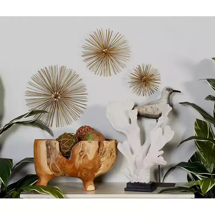 Put a splash of color and continuity onto your wall with our set of Gold Metal Disc Starburst Wall Plaque. The gold color will burst off the wall!