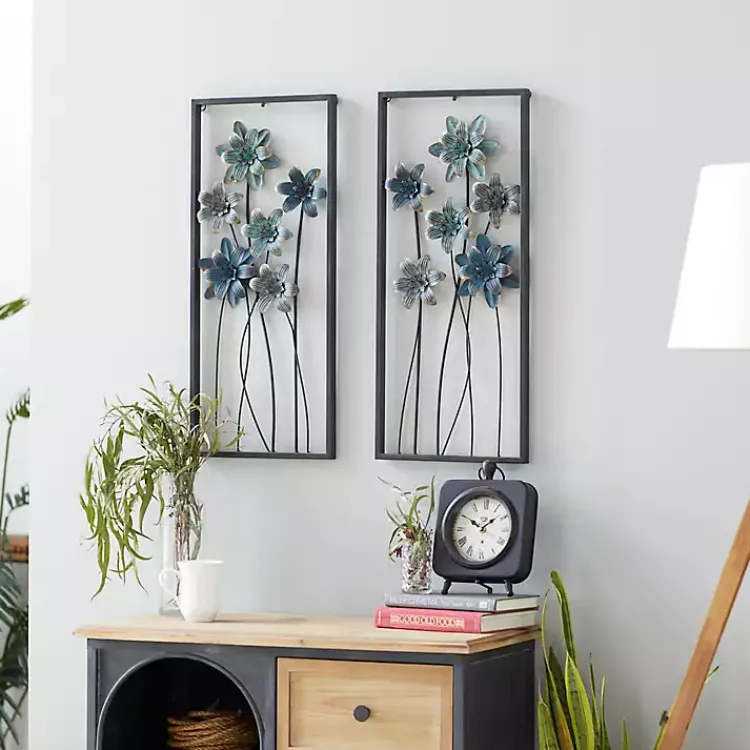 The set of Blue Metal Floral Panel Wall Plaques will adorn your walls with rustic elegance. The layered petals are accented with a distressed finish for a shabby-chic touch!