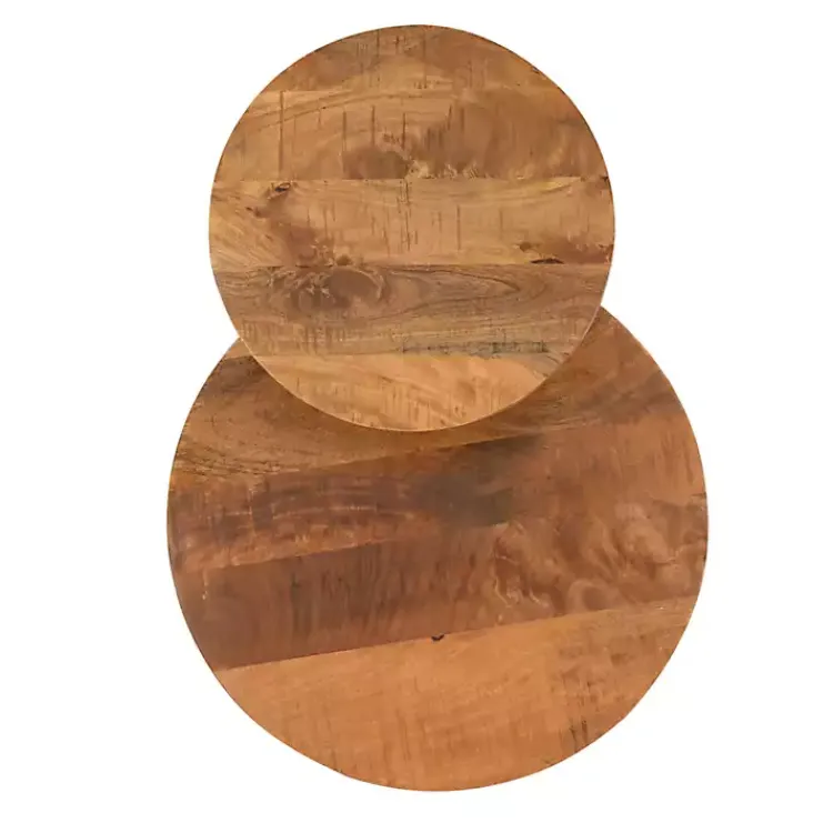 - Features a round, two-tier shelf design