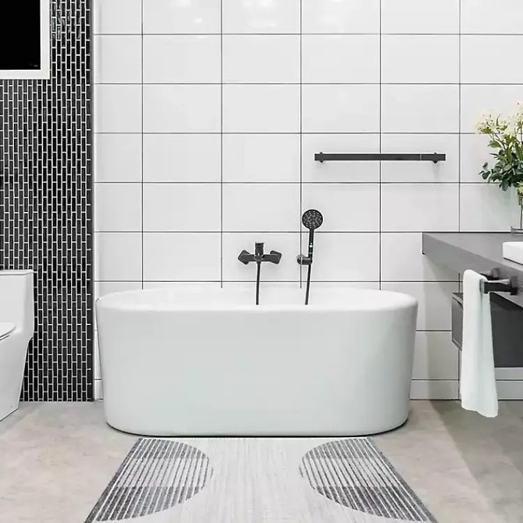Embellish your floors with the modern style of this Blue Linear Geometric Washable Accent Rug. With clean lines and a machine washable design, it will keep your space fresh!