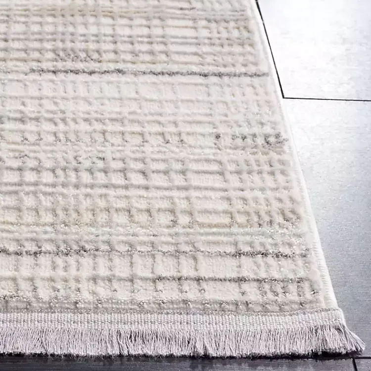 Bring both style and comfort into your home with this Gray and Ivory Whisper Striated Area Rug. Its chic, modern beauty will effortlessly update your space!