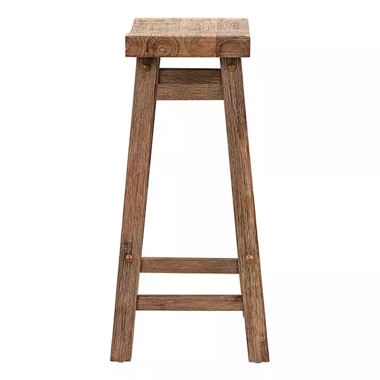 Add a natural look to your kitchen counter with the Acacia Barnwood Saddle Counter Stool Set! The wire-brushed finish creates a rustic, distressed look, while the ergonomic design ensures a comfortable seating experience.