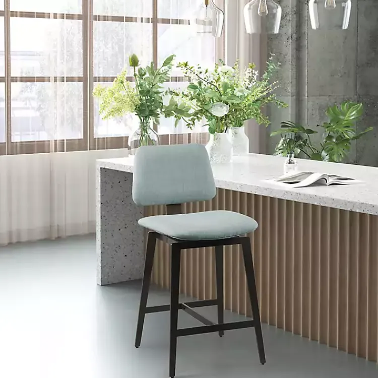 Discover sleek style and exceptional comfort with our Light Blue Swivel Counter Stool! Flaunting sharp, clean lines with a low back, this swivel stool showcases a refined modern silhouette to elevate your space.
