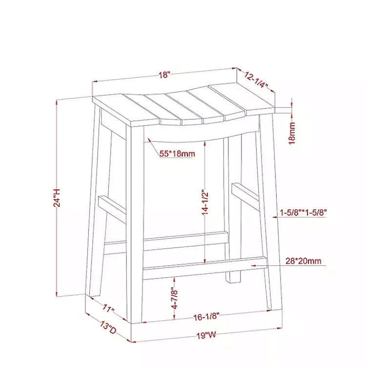 - Each stool measures 19W x 13D x 24H in..